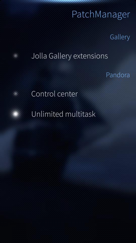 patchmanager is the continuation of my work on system tweaks on SailfishOS. It allows managing patches in the whole system. Patching system files can allow UI tweaks, and a lot of other features. Only the imagination of developers is limiting here.