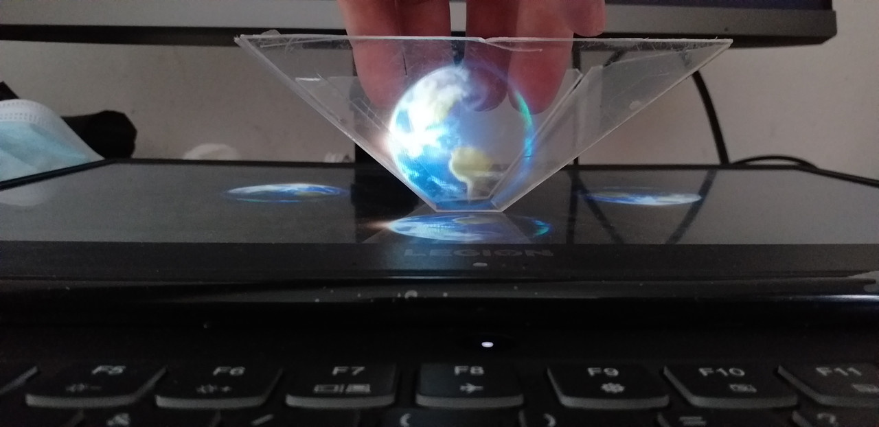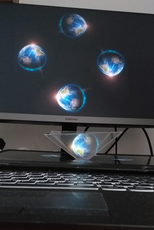 Here is my entry, a reflection of a image of the Earth in my home made hologram viewer: