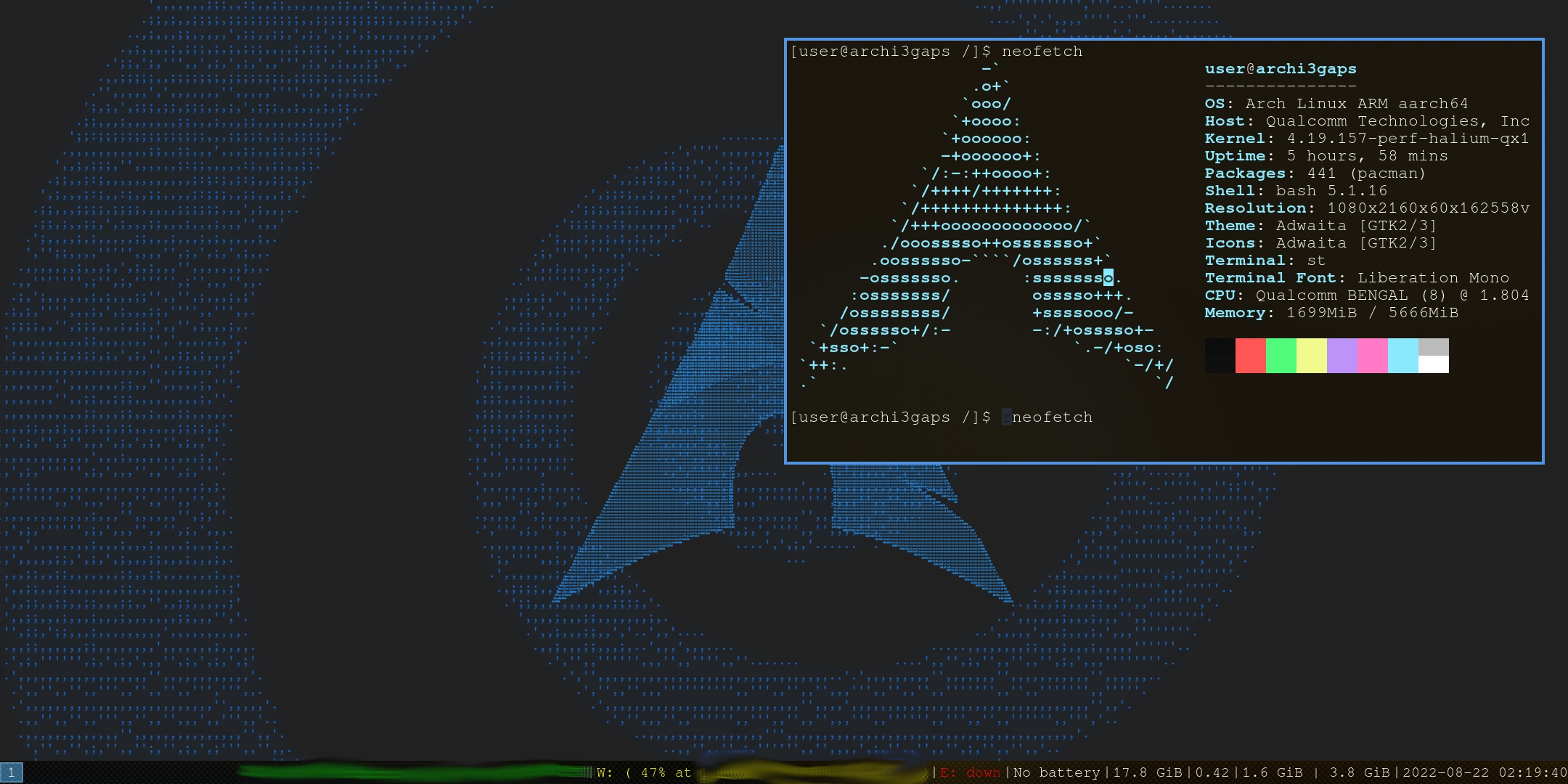 * Tue Aug 24 2022 - Add a script to install Arch-based distributions - WM choice when installing (xfce4 or i3), should work for all supported types of distros (Arch, Debian) - Better default configs for both WMs (scaling, right click (only in Arch), touch scrolling in Firefox) - Possibility to run the script multiple times on a container without breaking things, with failsafes (to some extent) - Prompts at important steps during install scripts (in case of overwriting config, or long compilations) - New icon, better for small screens - Custom wallpapers for Debian, Arch and Kali * Thu Aug 19 2022 - Updated description and license for Chum repository - Bumped version to avoid dep resolution issues - README overhaul - Fixing debian.sh - Fixing GUI typos - Sane xsession defaults for xfce4 and onboard - New icon - Back to qxcompositor instead of qxdisplay (autorotation)