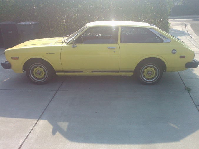 1976 toyota corolla.... AC, no power steering, and an AM radio. it aint so bad. i get alot of thumbs up from old asian dudes. lol. fixed it up myself!