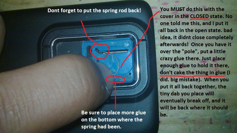 once you have just enough glue to hold the spring, put it all back together and let it dry for about 5 - 10 minutes. then give it a slide!
