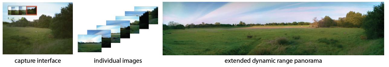Panorama. but this is processed as the picture is being taken, and does not require a wait time for the image to process. secondly, with each "shot" it takes a regular exposure, and longer exposure shot, then merges the two, then after it is all finished they are "stiched" together.