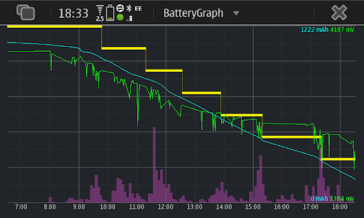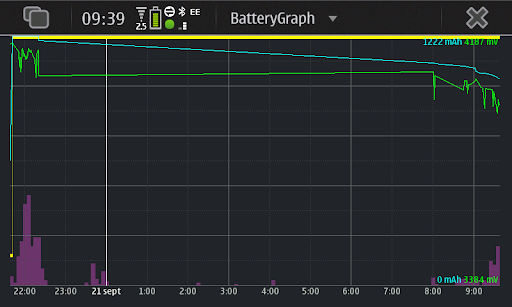 3. MSN Idle 9h on 2G: Battery 97% down to 74% = 23% in 8h = 2,555% per hour.